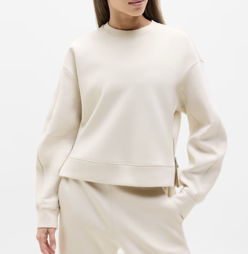 ATHLETA IN THE CLOUDS JACKET ~ like a cozy, chic bear hug. Great elastic bottom and more color options, wearing my regular size small. Also worn in this outfit and grabbed this sweatshirt while I was there ~ worn in this outfit