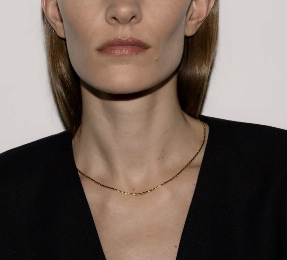 DORSEY NECKLACE LAYER ~ have had on repeat for over a year and both look new, lab diamond curve in silver & gold chain