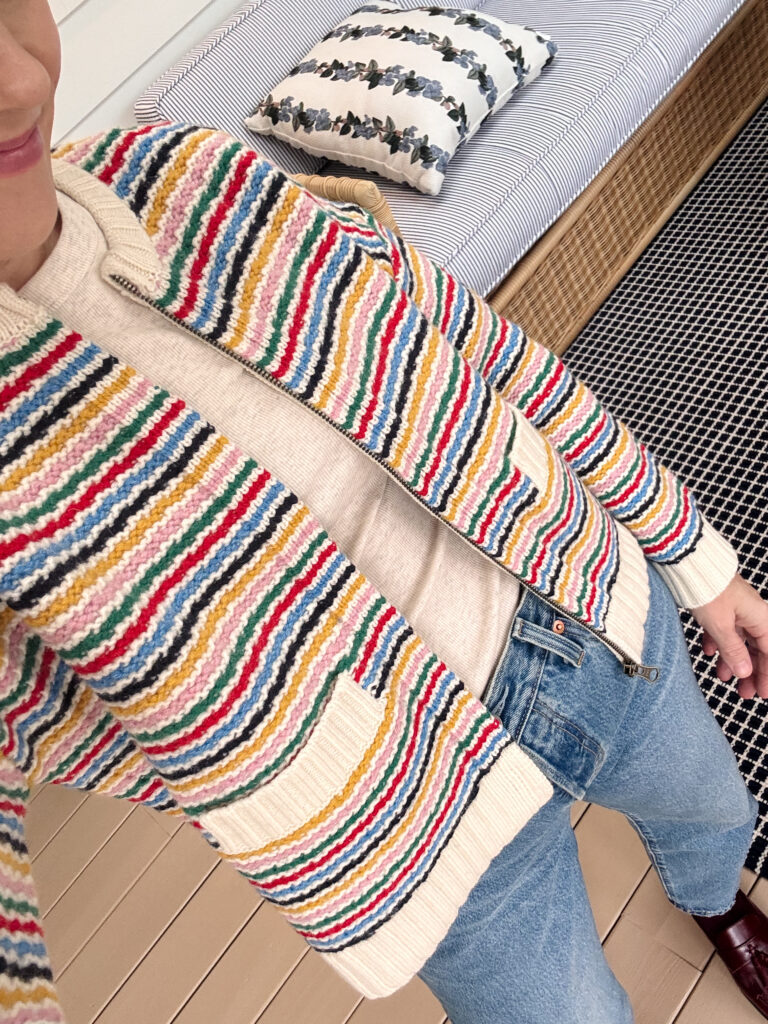 BODEN ZIP UP SWEATER JACKET ~ wow are the colors stunning in person! will be perfect to transition to Sprint, also comes in a gorgeous solid green colorway, wearing my regular size 4 ~ this and this were also in my order!