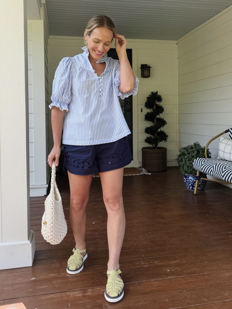 VINEYARD VINES EYELET PULL ON SHORTS ~ the most beautiful details in a classic navy ~ check out more color here and the matching top here. Note they are a mid-rise and a little bit shorter which pairs well with flowy Summer top. Wearing my regular size small. This dress and this sweatshirt were also in my order.