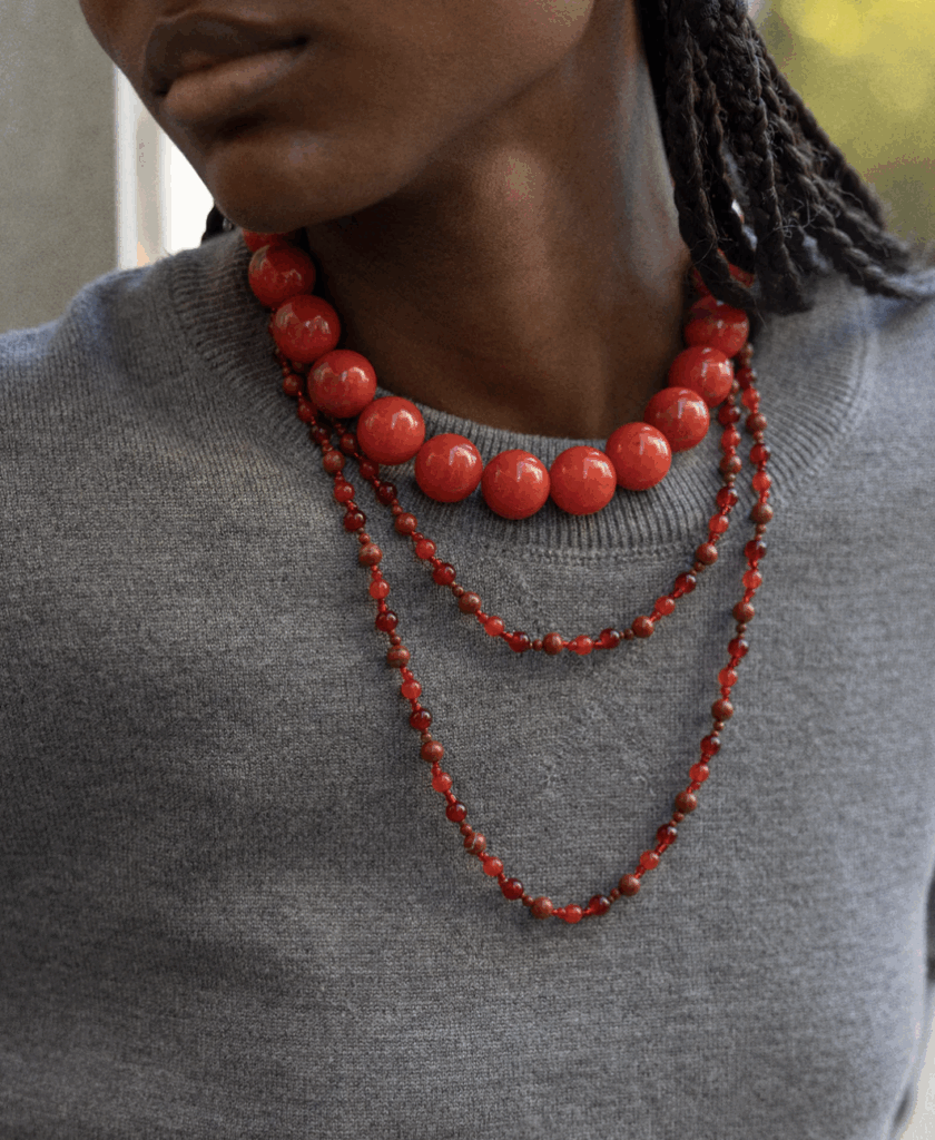 BAUBLE BAR JOAN NECKLACE ~ in red jasper, see how I layered it with the charlotte necklace in this outfit