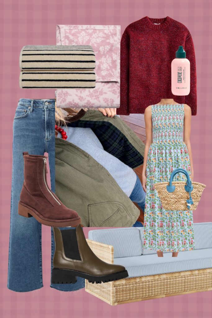 CHAPPYWRAP summer blaket : BROOKLINEN super plush towel set : AGOLDE JEANS I wear them 3x a week at least, fit true to size : HILL HOUSE HOME DRESS all sizes are back! I sized down to xs since I’m smaller on top : DOLCE VITA BOOTS true to size : FREDA SALVADOR rain resistant Brooke boots fit, true to size : PAMELA MUNSAN petite beach & town tote: RUMORED barn jacket : SERENA & LILY up to 25% off everything : J.CREW SWEATER slightly oversized, wear my regular size small: COCO & EVE miracle elixir